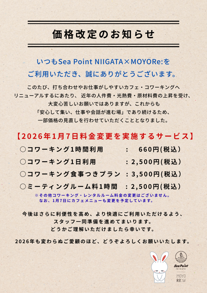 2025年も新潟駅Sea Point NIIGATA × MOYORe:をご利用いただき、誠にありがとうございます。